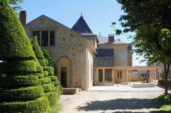 La maison Jane Limousin est posée sur un terrain présentant un fort dénivelé Sud-Nord en surplomb d'un grand jardin public. Elle est composée de 3 bâtiments orientés NO/SE partiellement enterrés.