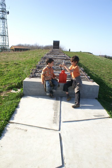 L’aménagement est conçu comme une succession de balcons sur le paysage reliés entre eux par un cheminement engazonné. L’entrée sur le site a été modifiée afin d’éviter la confrontation directe avec l’antenne. Le cheminement principal trace la ligne de franchissement du puy et effectue une coupe à travers le paysage et son histoire. Chaque balcon cadre sur un morceau de paysage et permet d’aborder de manière progressive l’histoire et les usages du Puyconnieux à travers les siècles .Au sommet, la ligne de crête et d’interfluve est matérialisée par une ligne de rondins qui reprend le vocabulaire des exploitations forestières très présentes sur le territoire. Elle se déroule sur la ligne en suivant le terrain. De largeur constante 2 m, sa hauteur varie de 40 cm à 3 m en fonction des espaces traversés. Elle est tour à tour banc, passage, plate-forme et mur-écran. Elle sert de support d’information, de mobilier et de barrière visuelle aux bâtiments techniques présents sur le site.